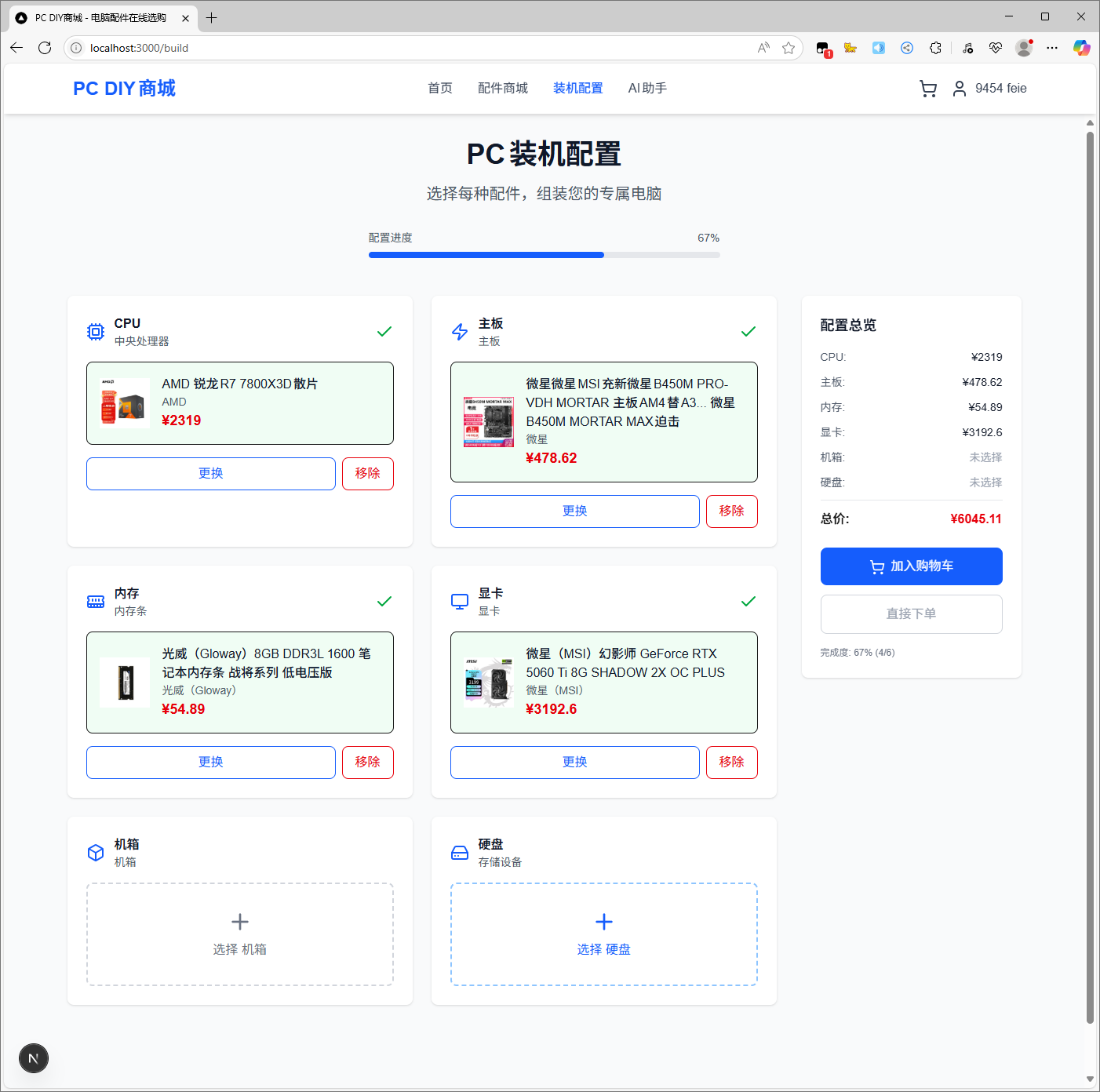 - 价格统计:实时显示装机单总价