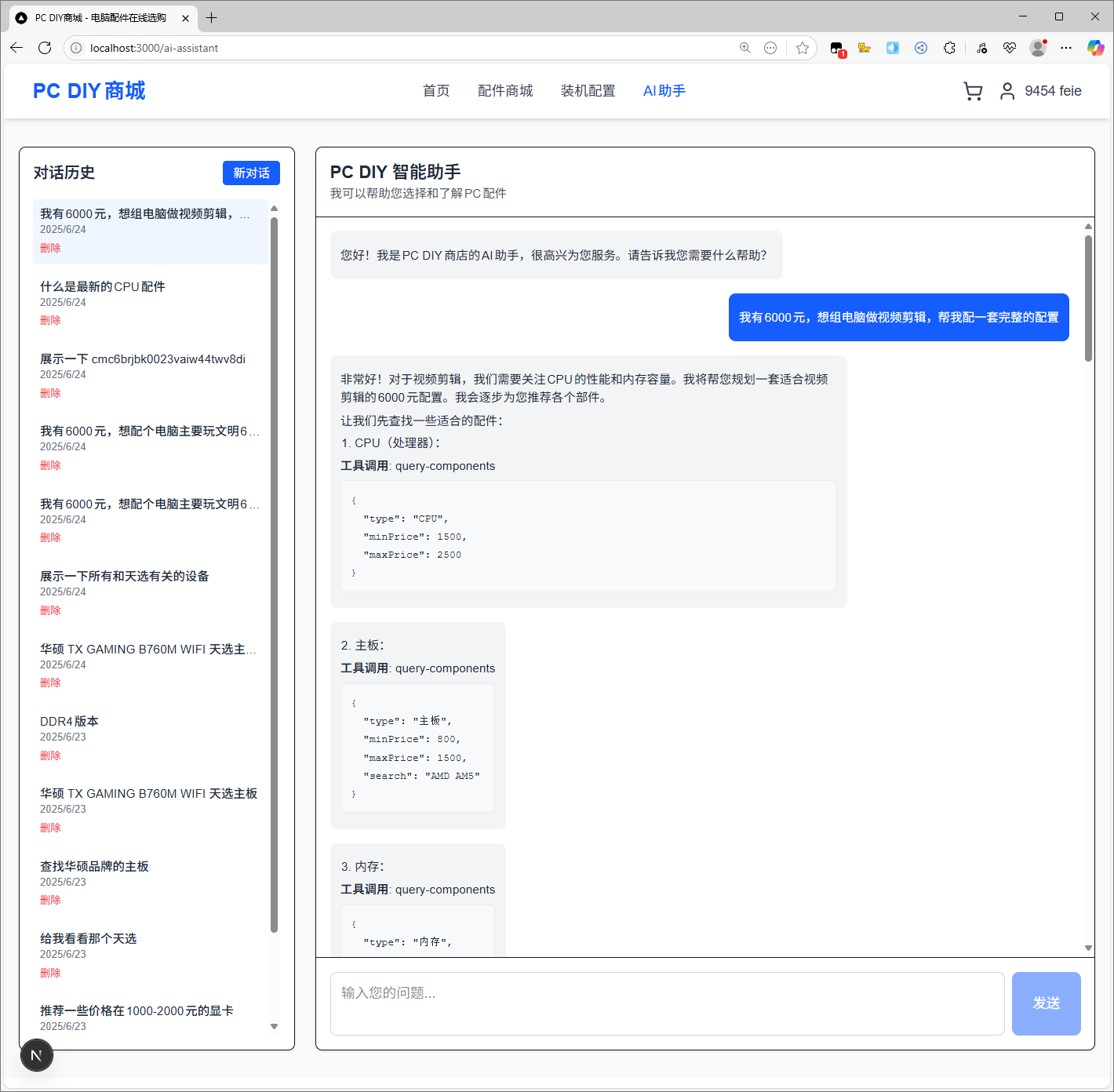 - 自然语言理解:理解用户的配件需求和预算