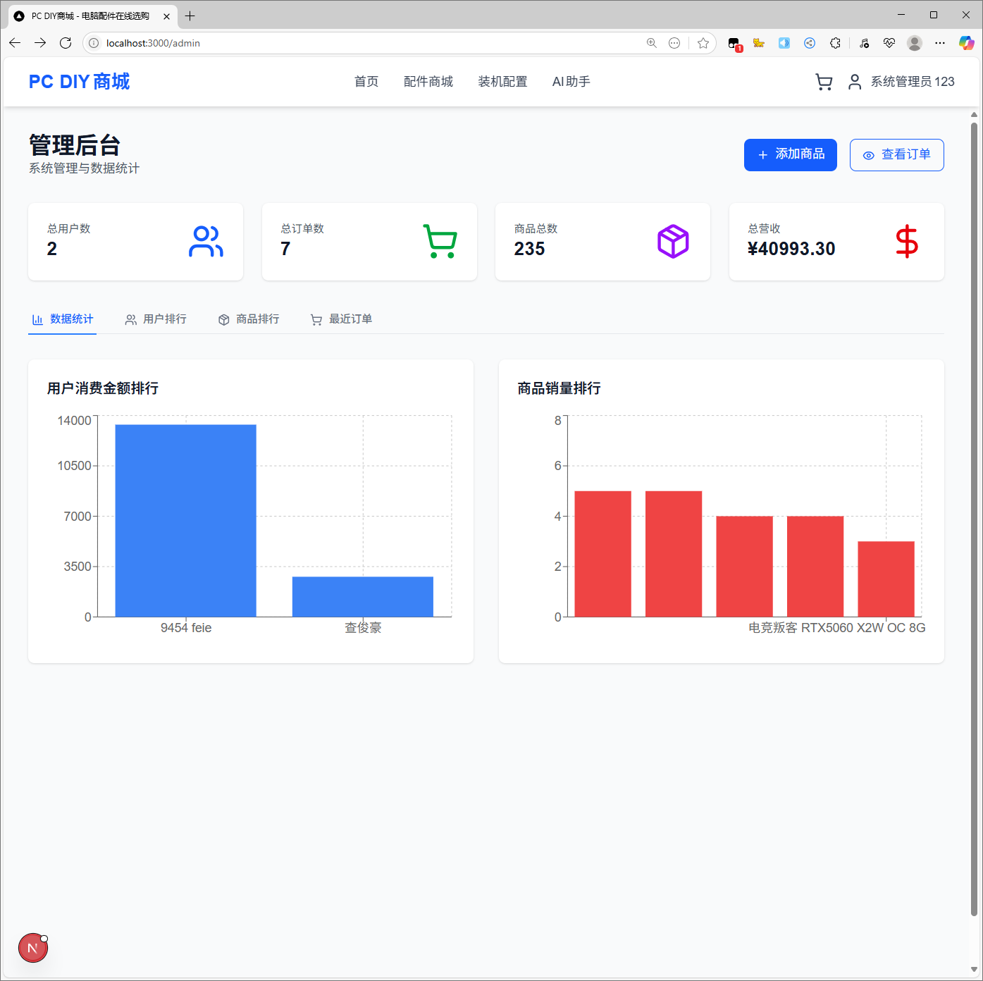在线电脑DIY系统是一个面向电脑爱好者和DIY玩家的综合性电商平台。系统不仅提供传统的商品浏览、购买功能,更创新性地集成了AI智能助手,为用户提供专业的配件选择建议和装机指导。系统采用B2C模式,支持多角色用户管理,具备完整的商品管理、订单处理、数据统计等功能模块。
